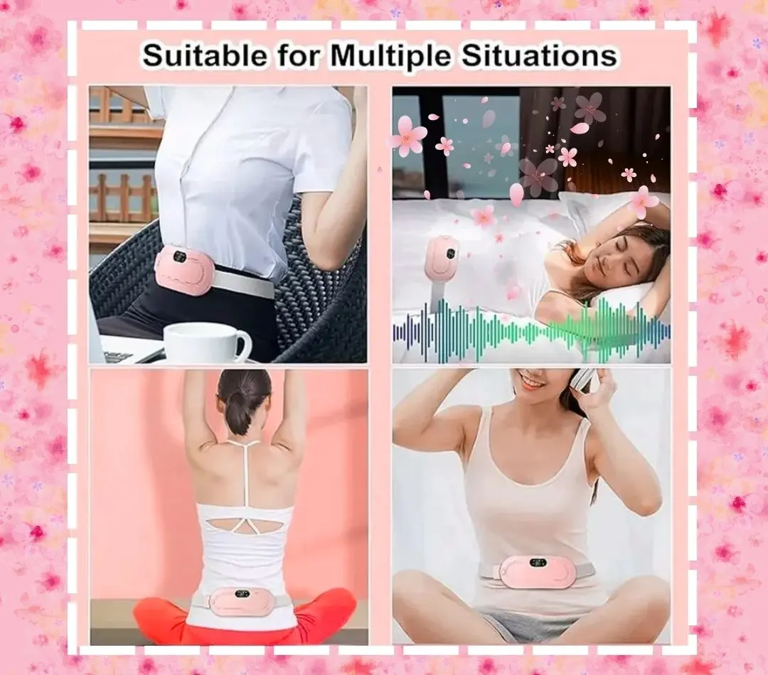 🔋 Portátil y recargable:💖 Diseño ergonómico y suave: Se adapta perfectamente a tu abdomen o espalda para brindarte confort total.